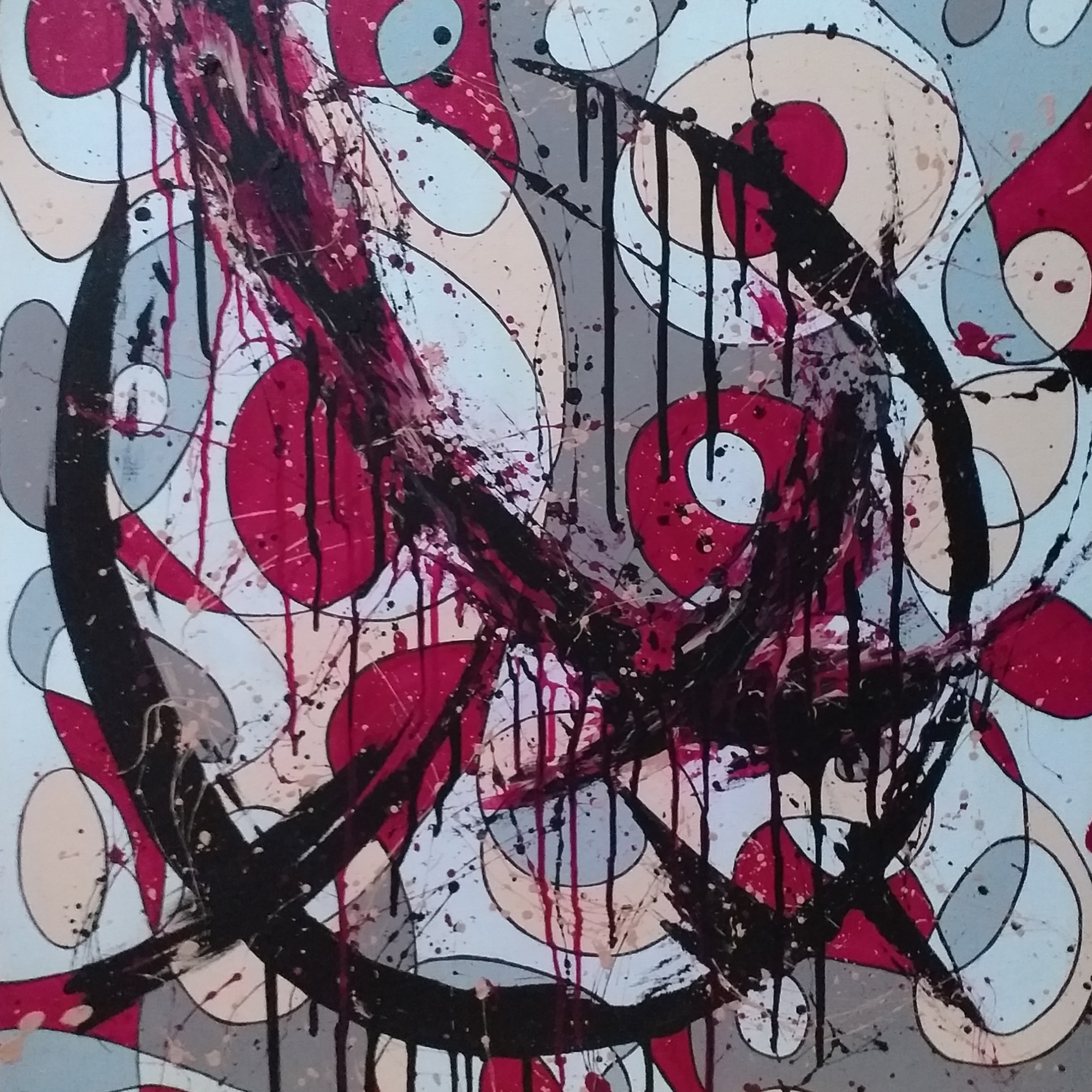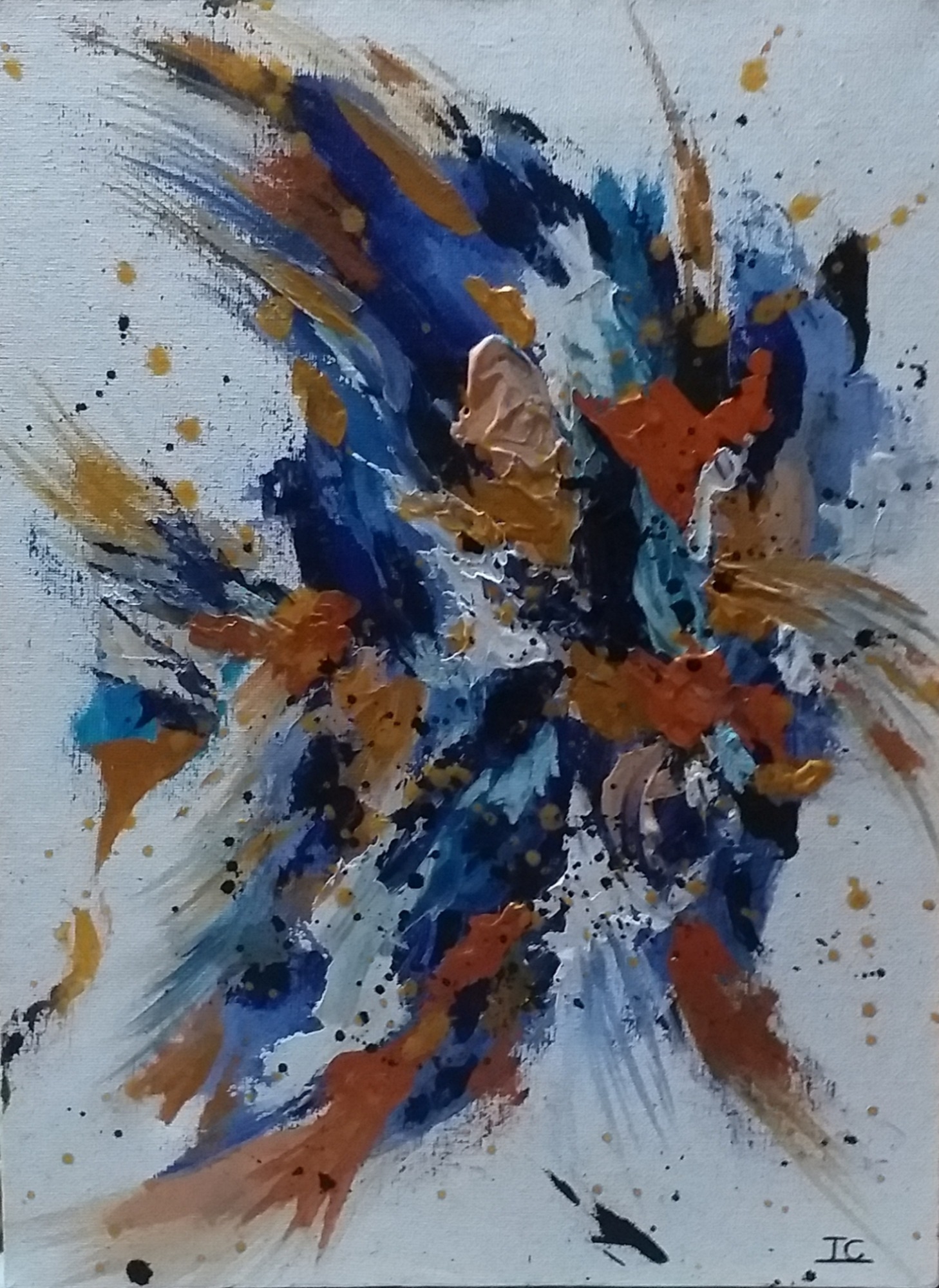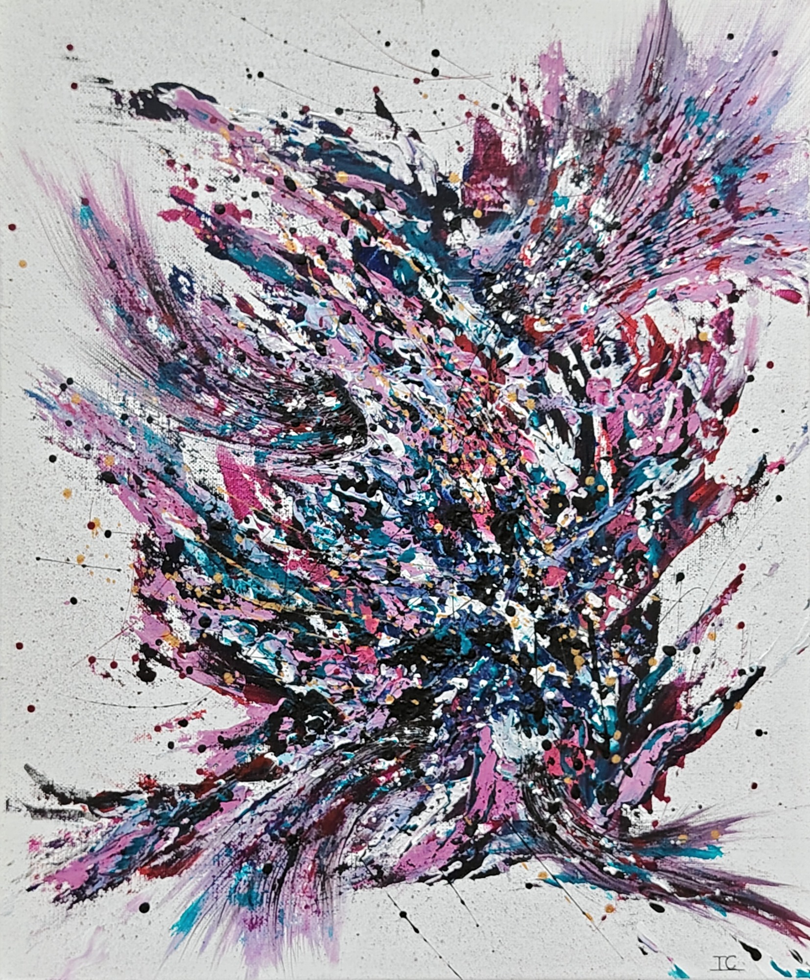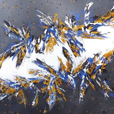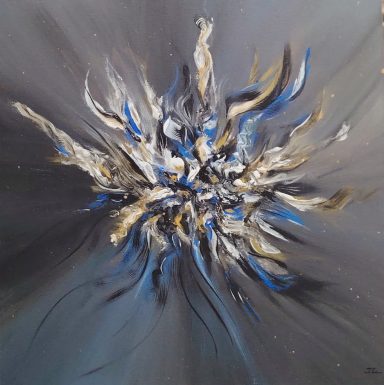 Une énergie brute et vibrante, mêlant chaos et harmonie à travers des éclaboussures et des gestes spontanés (46×38 cm)