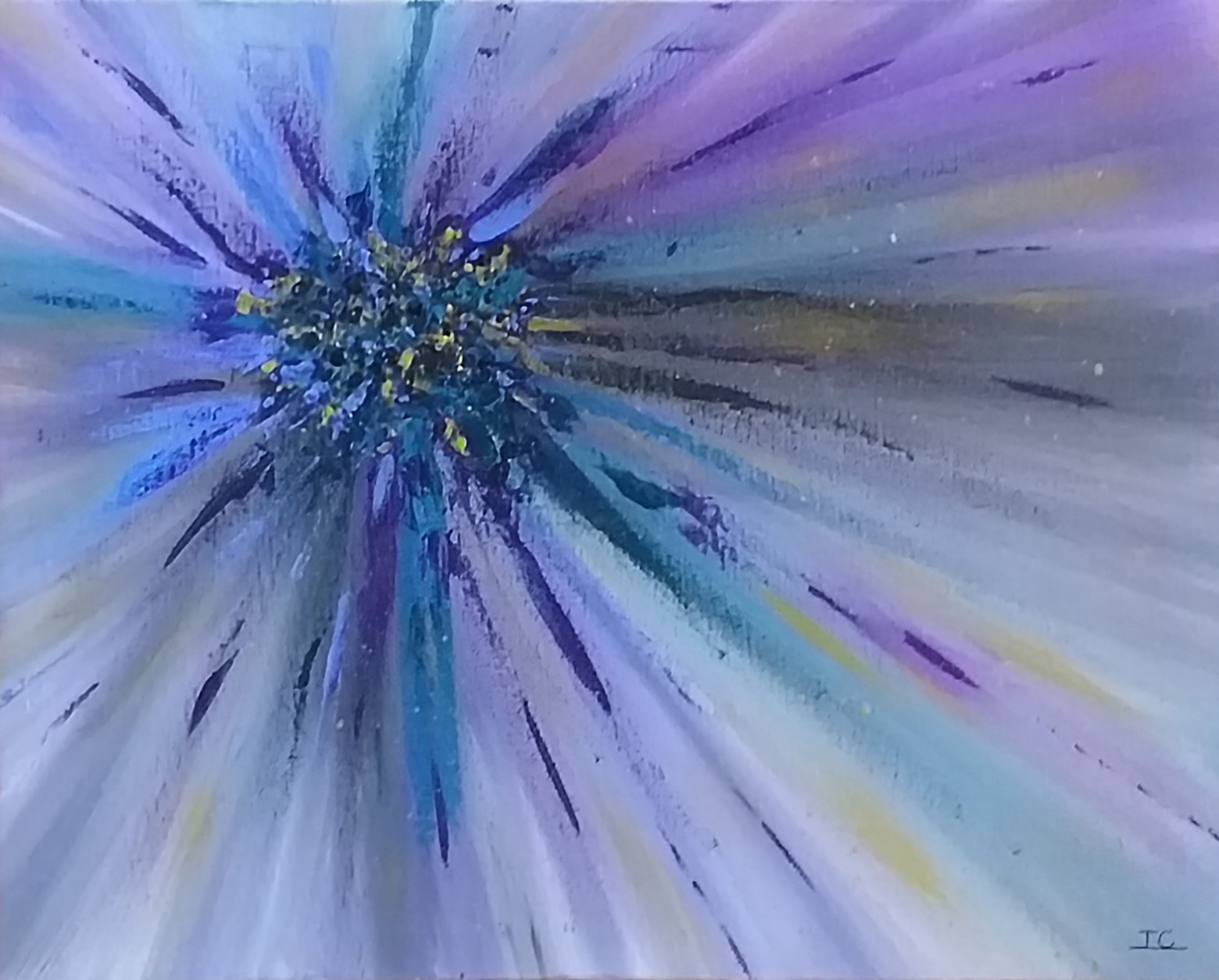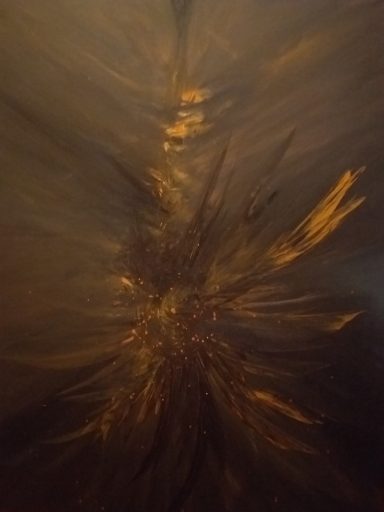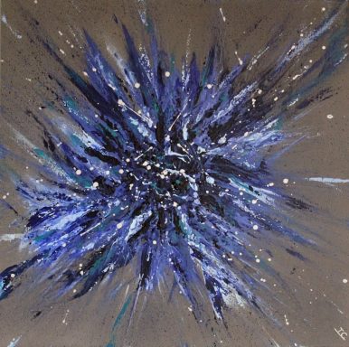 Une explosion d’énergie cosmique, où les teintes pourpres et noires dansent en un mouvement futuriste (46×38 cm)