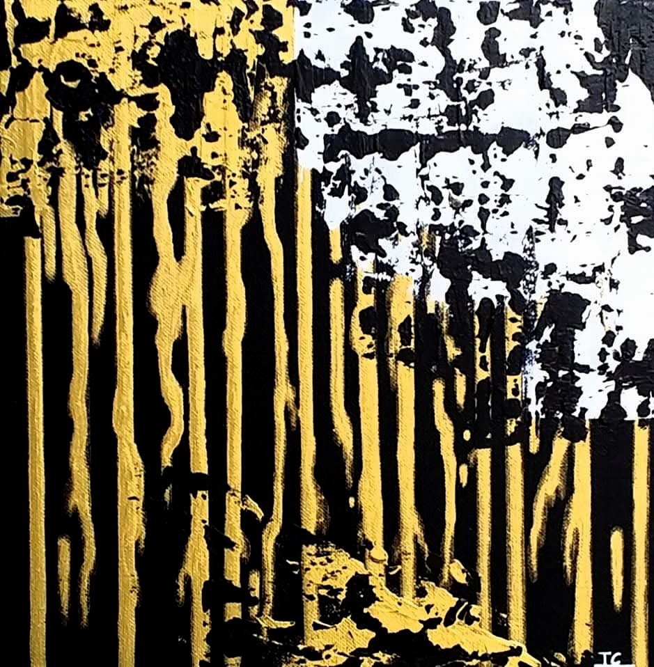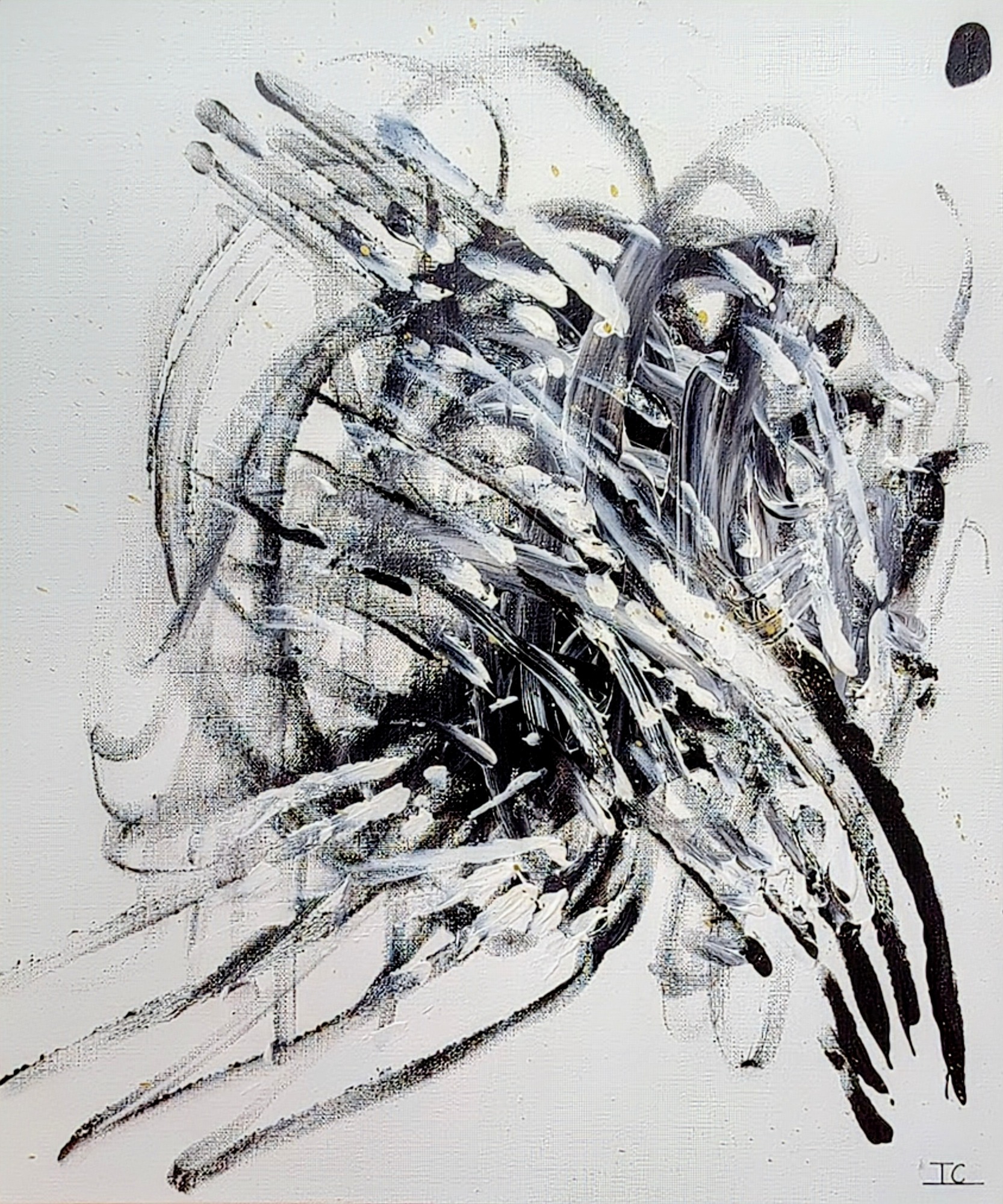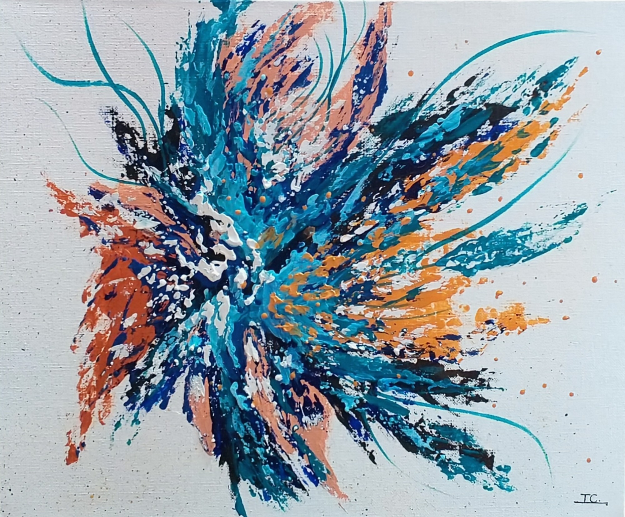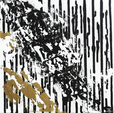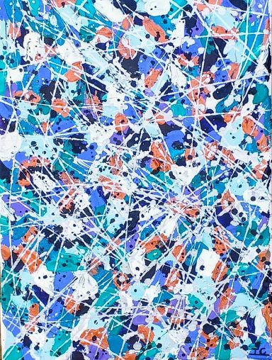 Une énergie brute et vibrante, mêlant chaos et harmonie à travers des éclaboussures et des gestes spontanés (46×38 cm)