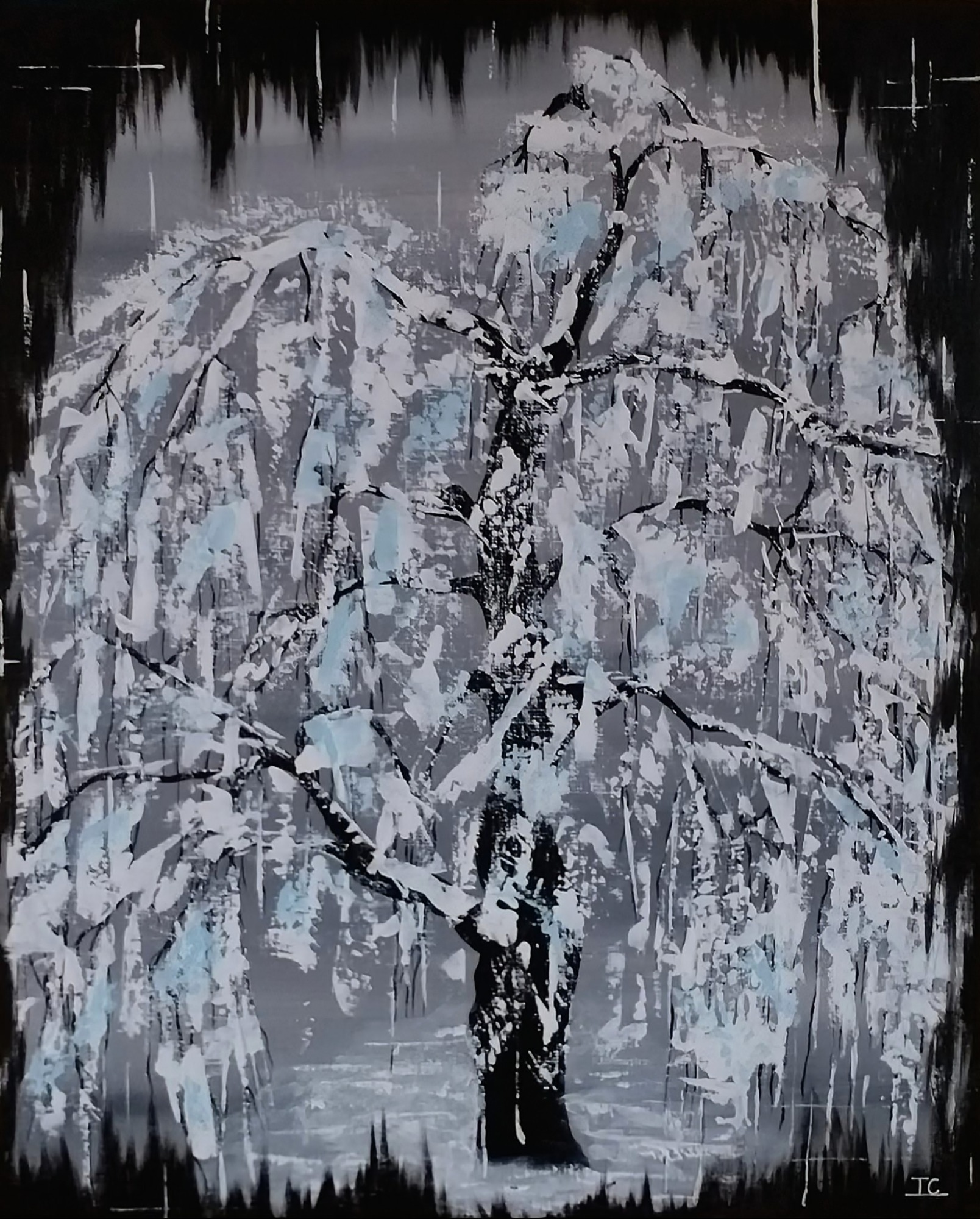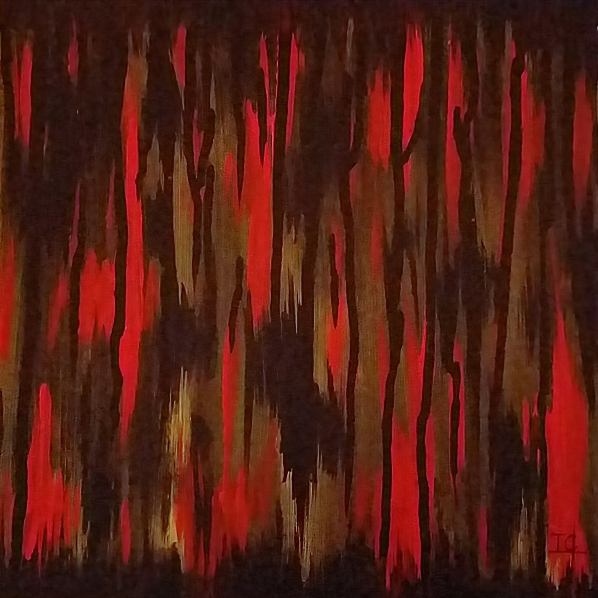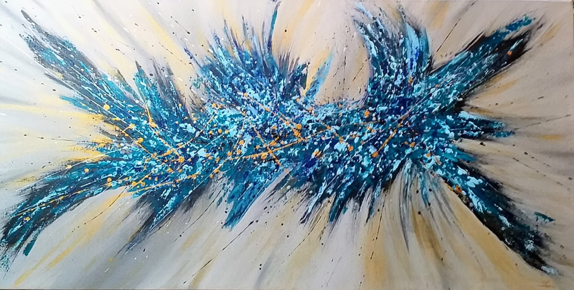 Une énergie brute et vibrante, mêlant chaos et harmonie à travers des éclaboussures et des gestes spontanés (46×38 cm)