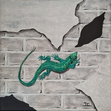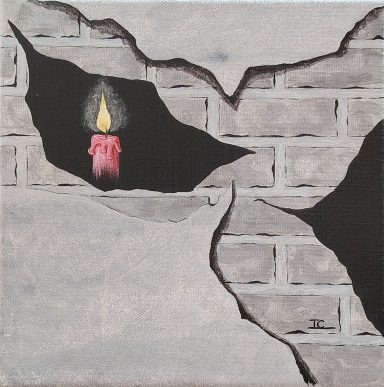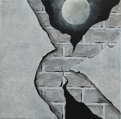 La peur comme une force intérieure, fissurantles murs de notre conscience. Collection "The Wall" 55×46 cm.