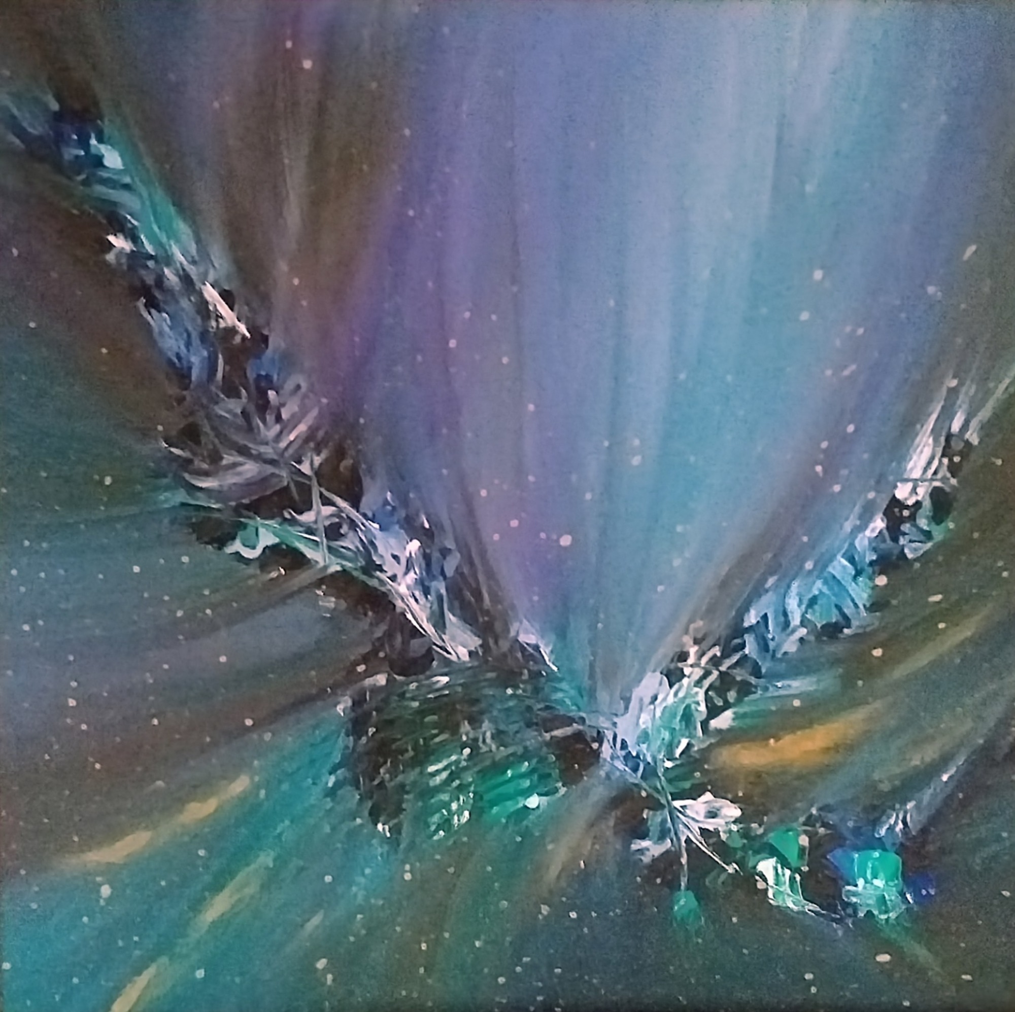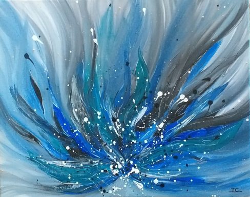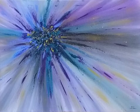 L’essence mouvante des émotions humaines, mêlant chaque éclat de couleur par une pulsation de vie (30×30 cm.)