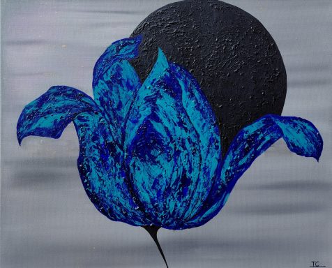 L’essence mouvante des émotions humaines, mêlant chaque éclat de couleur par une pulsation de vie (30×30 cm.)